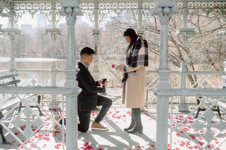 Nisha and Sagar’s Ladies Pavilion Central Park proposal photographed by Karis from Hey Karis.