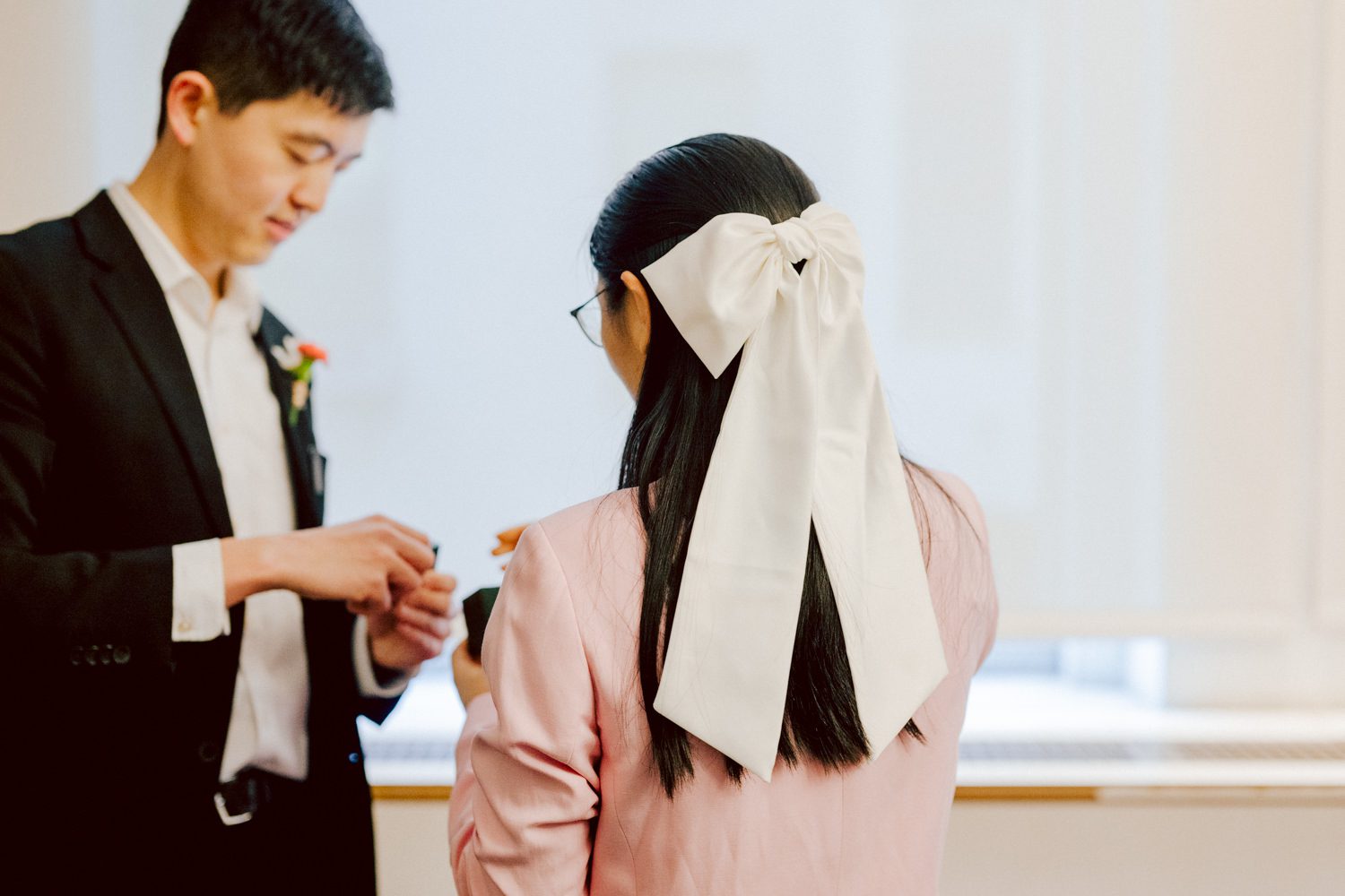 On April 5, I rendezvoused with Alicia and Kevin outside The Office of the City Clerk – Marriage Bureau. Despite hoping for a warm, sunny day, the brisk April air lingered, accompanied by a chilly breeze. Accompanied by a friend who served as their witness, we walked into the building.