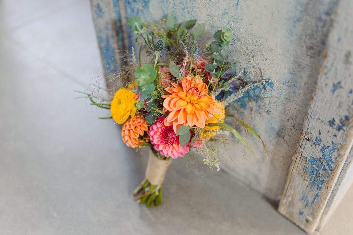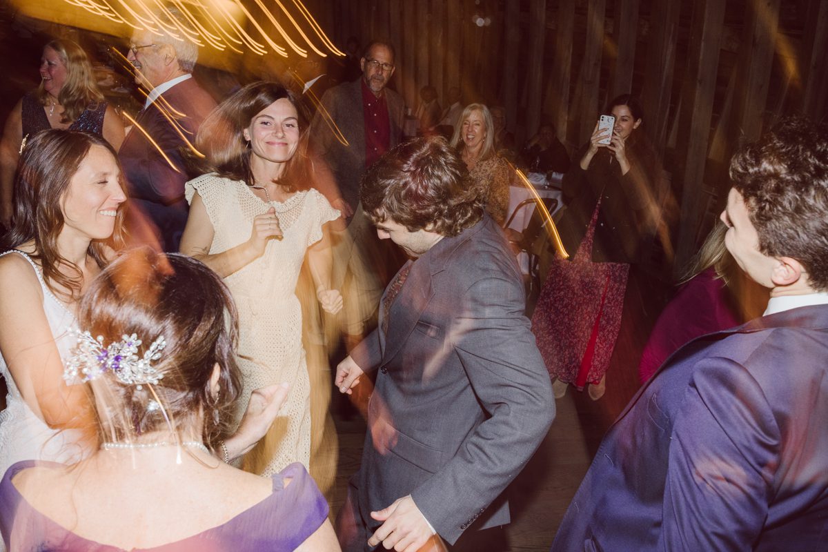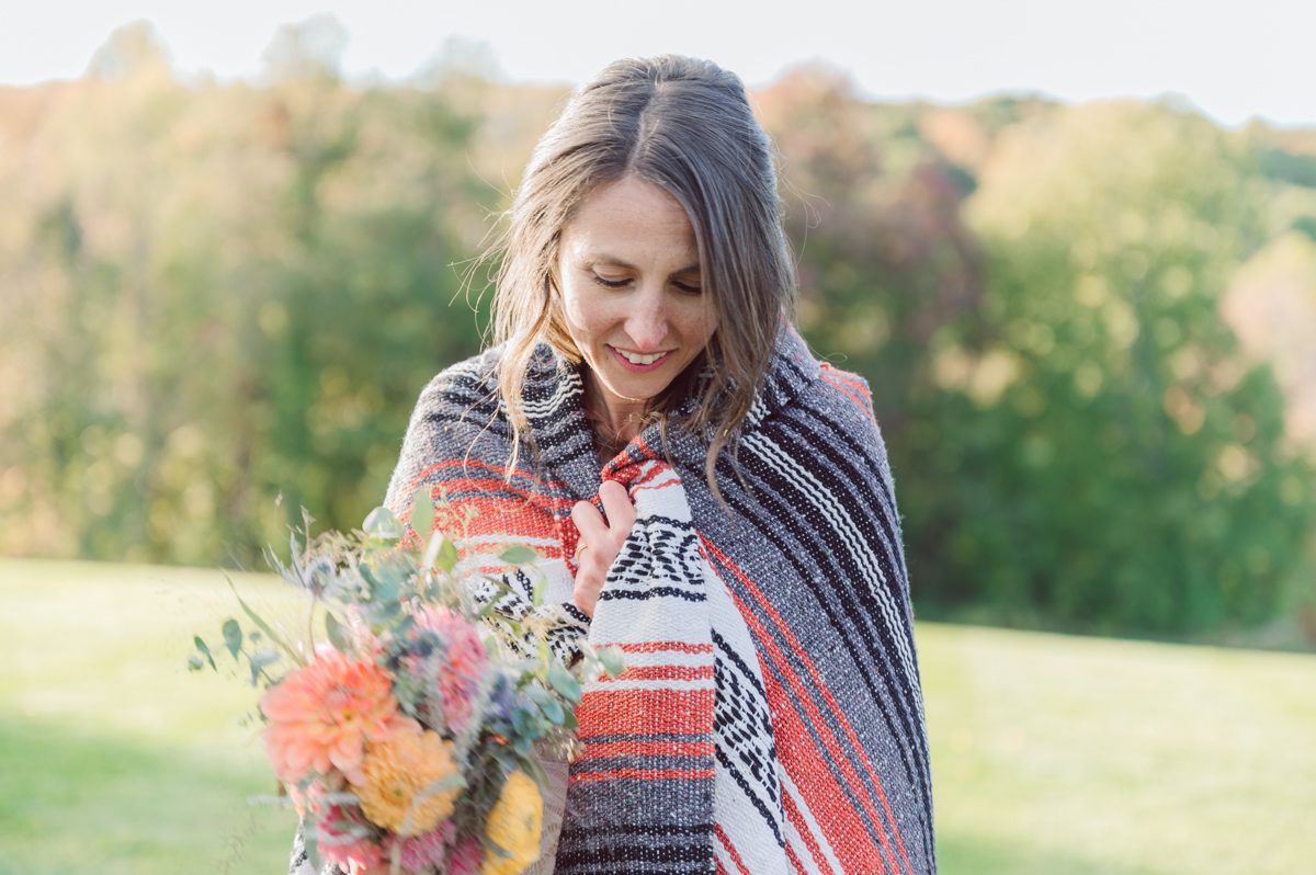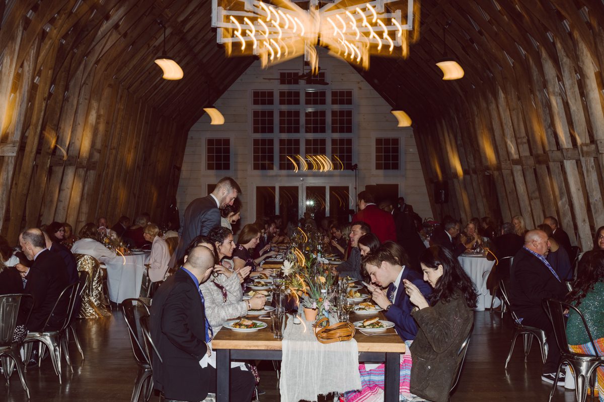 On my way up the hill to the ceremony spot, saw a baby Highland Cow grazing standing close to the fence and of course I stopped to snap few more photos. Felt it getting little more colder and windier up on the hill but wow it was so beautiful! Surrounded by nature move, I saw guests arrive on a yellow school bus and soon Becca and Dan’s wedding ceremony on top of the hill at The Farm at Glenwood Mountain began and ended beautifully. Becca warped in Serape blanket looked happy & very cold at the same time. Soon we all made our way into the gorgeous spacious barn here at The Farm at Glenwood Mountain.