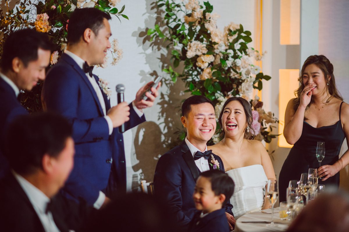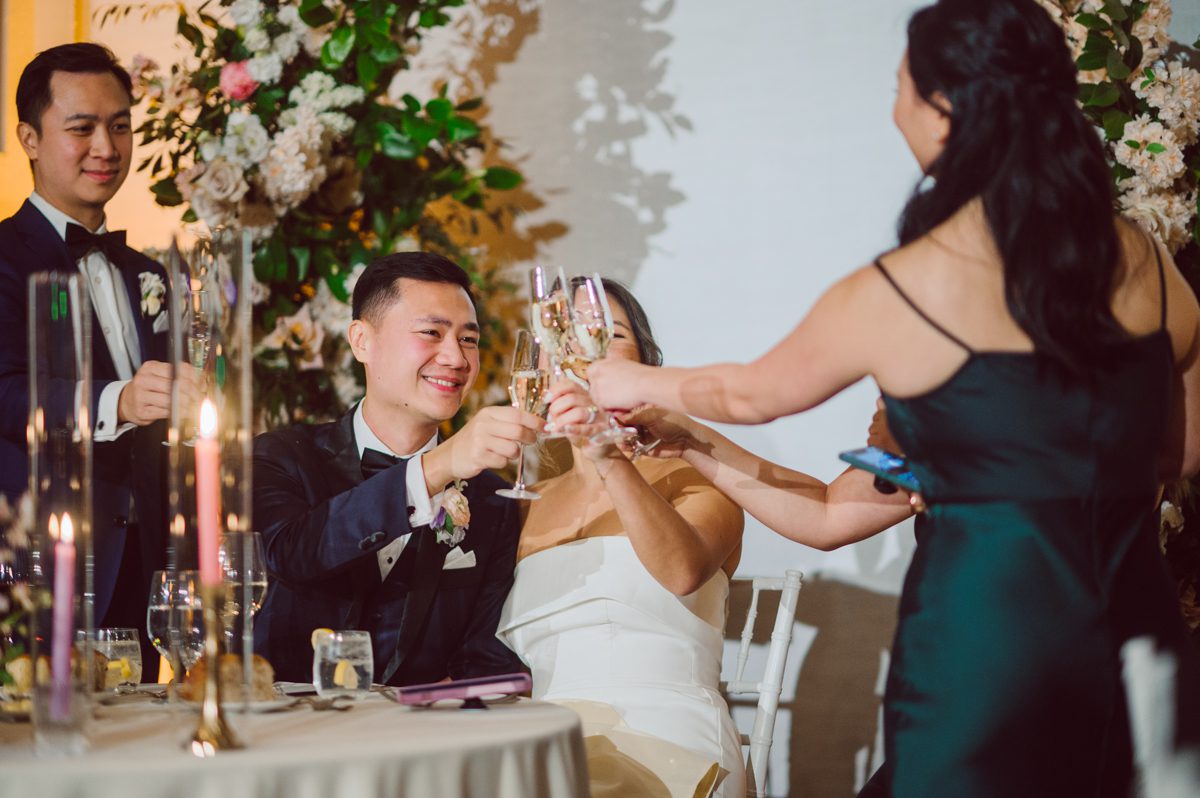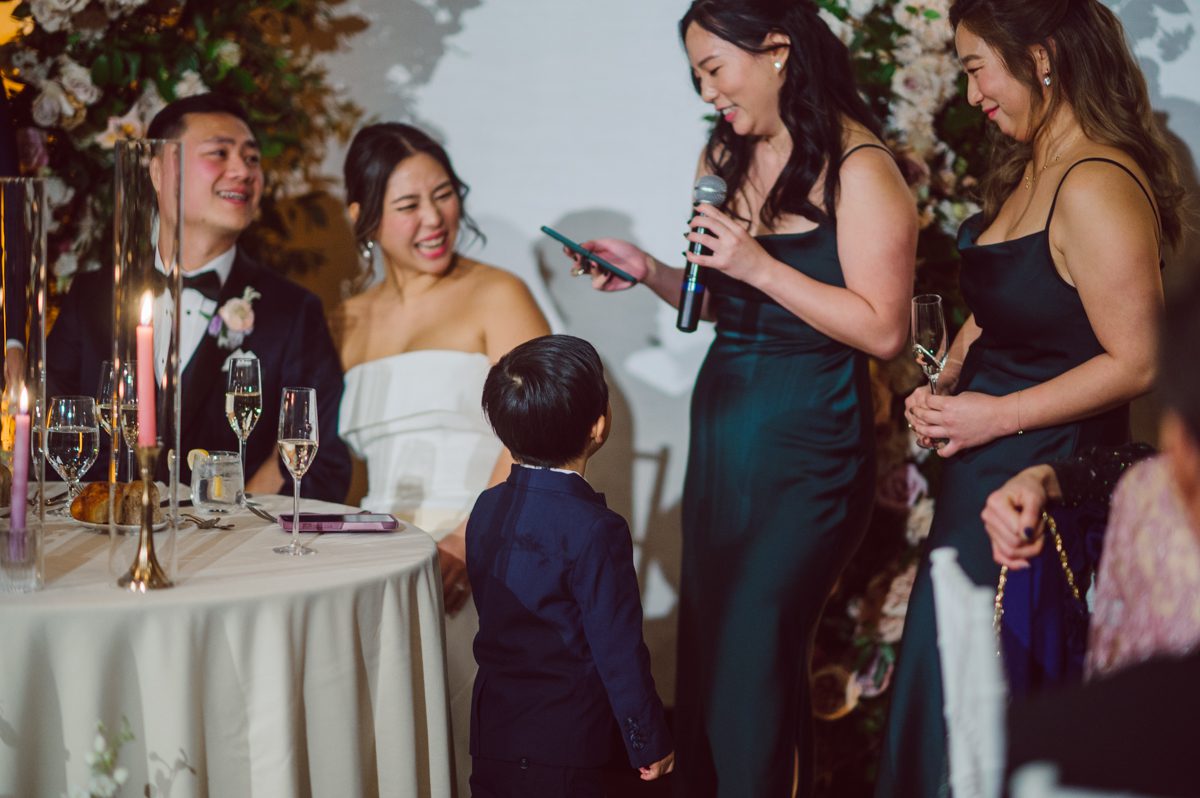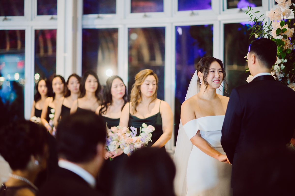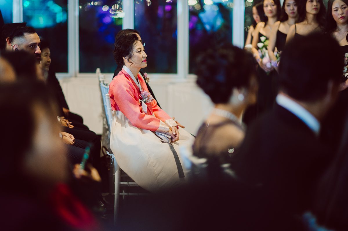 Florists from Oh Fleur NYC were all busy decorating The Palm House at Brooklyn Botanic Garden for the wedding ceremony, Ariana changed into her Sarah Seven wedding dress from her previous outfit “Hanbok” (traditional Korean outfit).