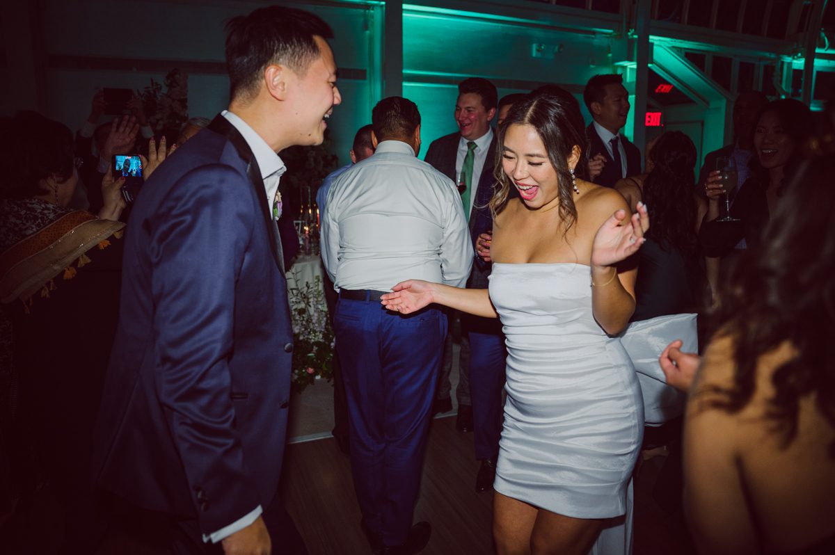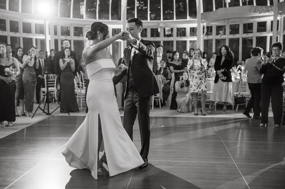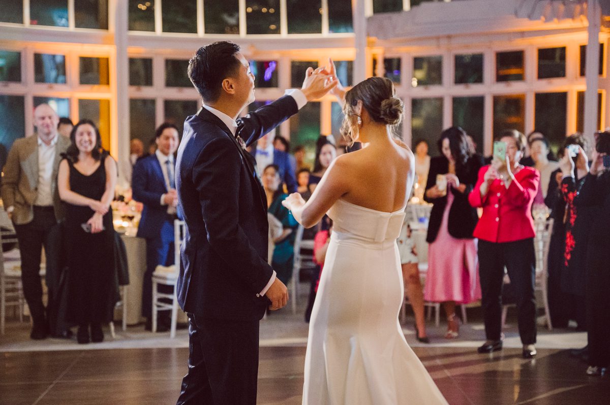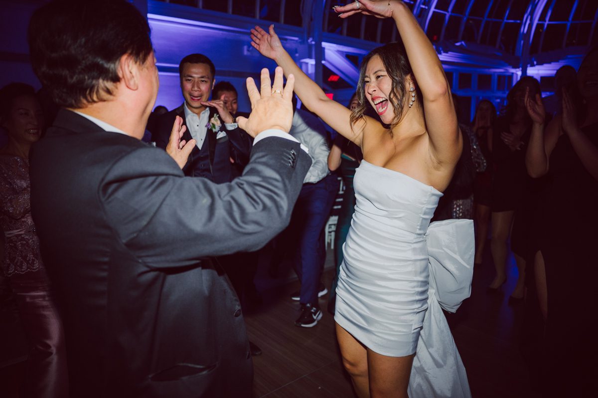 It was dark outside when Ariana and Jon’s wedding ceremony started at The Palm House, but that made it that much more romantic. The whole vibe inside The Palm House at Brooklyn Botanic Garden was warm with pink, peach candles along side delicate floral center pieces. Once the mood was set, decors were completed, the guests flooded into The Palm House at Brooklyn Botanic Garden in greens, blues, pinks and reds for Ariana and Jon’s wedding reception