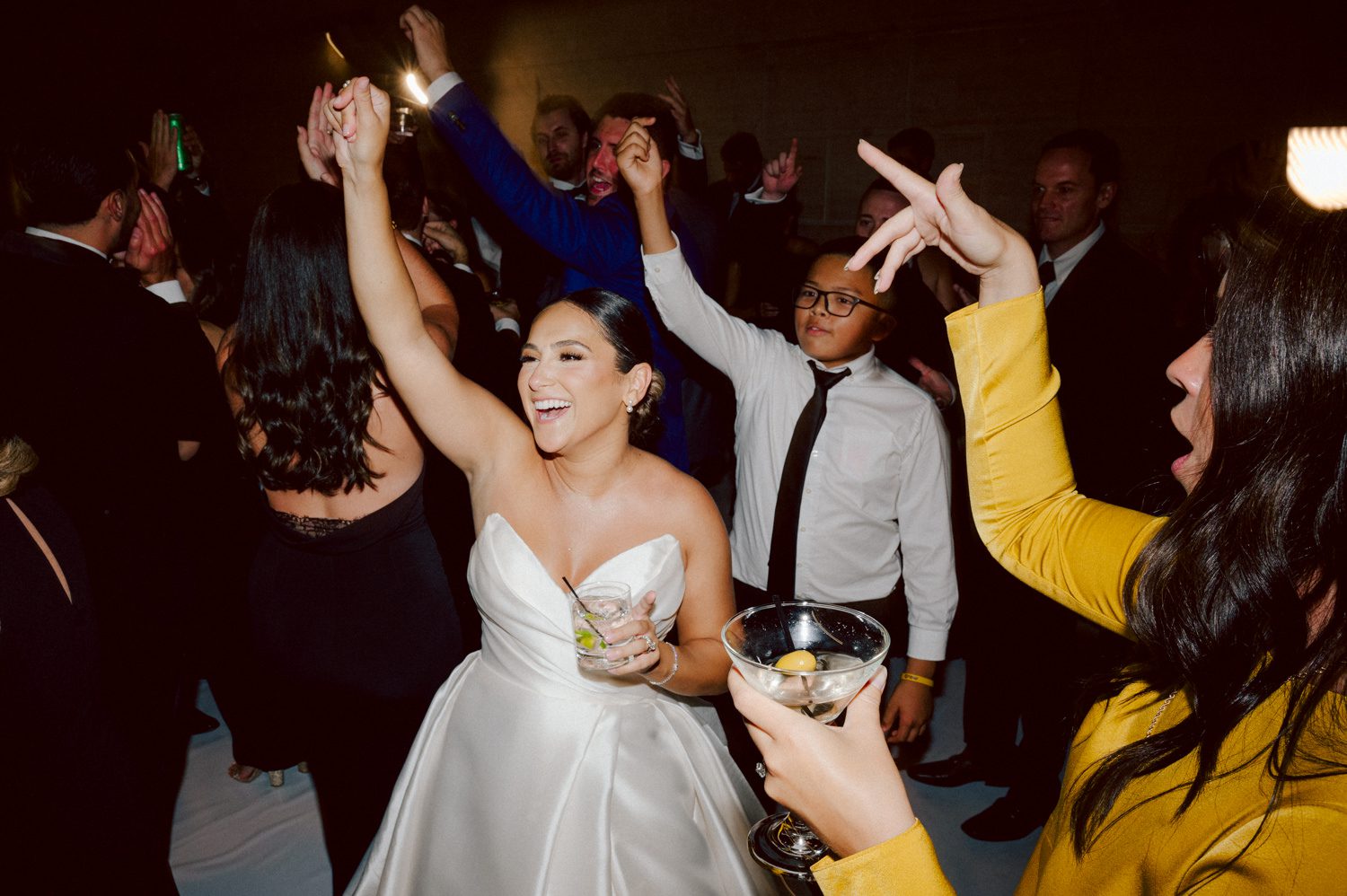 The joyous couple rang the wedding bell at St. Augustine’s, exiting with arms raised as husband and wife. By 4 in the afternoon, everyone boarded the party bus, heading straight to the historic Merchant Exchange Building Philadelphia for a stunning photo session. With perfect lighting and weather, surrounded by great company, we wrapped up all our formal wedding portraits, with only one word on everyone’s mind: PARTY.